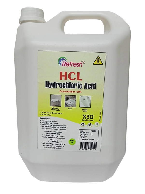 Transform your cleaning routine with Refresh Acid (HCL) X50, a premium-grade Hydrochloric Acid (HCL) 33% solution designed for maximum efficiency. Whether you're tackling tough stains, removing scale buildup, or ensuring superior sanitation, this powerful acid-based cleaner is your ultimate ally for deep cleaning tasks.